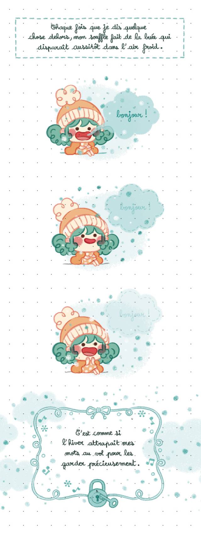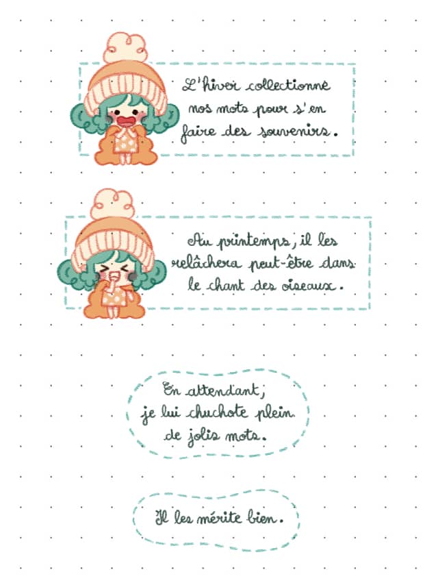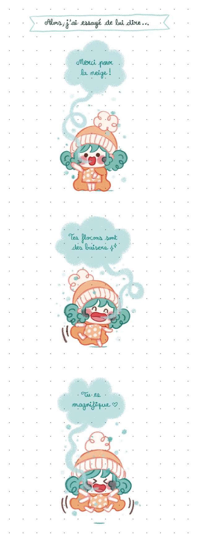 Voici 3 murmures qui sont venus me chatouiller l'oreille pendant que je dessinais ces dernières semaines.