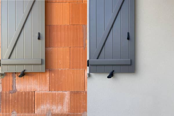 Je crois qu'on aime tous voir des photos avant/après lorsqu'on fait des travaux ! Voici ci-dessous un avant/après très satisfaisant de l'enduit qui a été appliqué sur les murs de notre maison en construction !